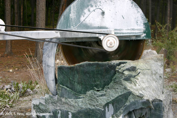 Jade being cut from boulders and sold as slabs, blocks or custom cuts