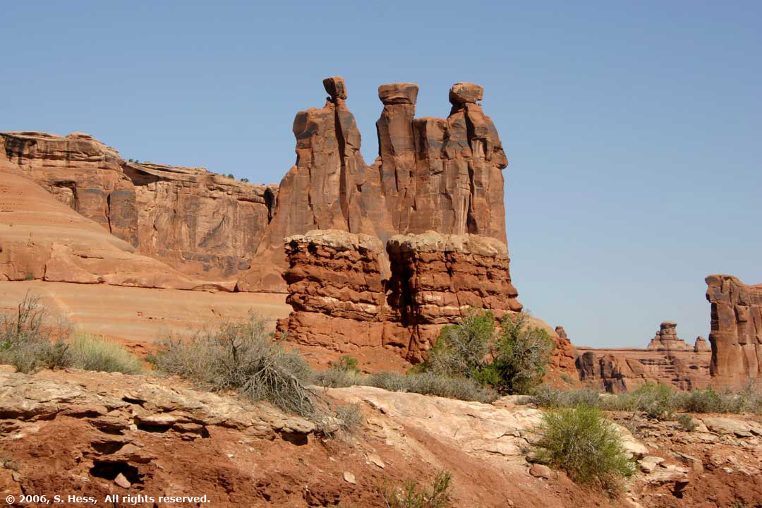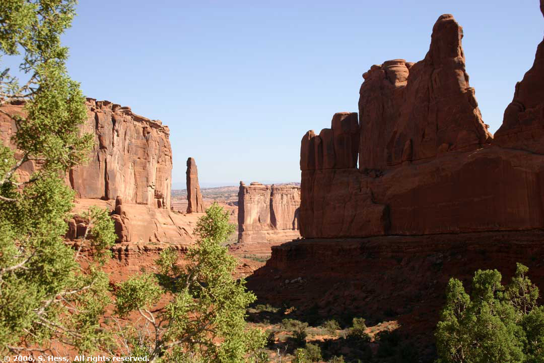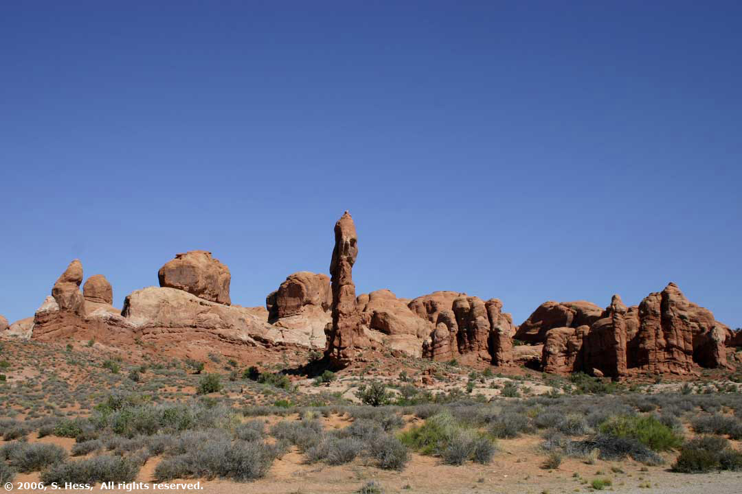 | Windows area of the park. Balanced Rock, right, is one of the prominent features in the area. | ||||||||||||