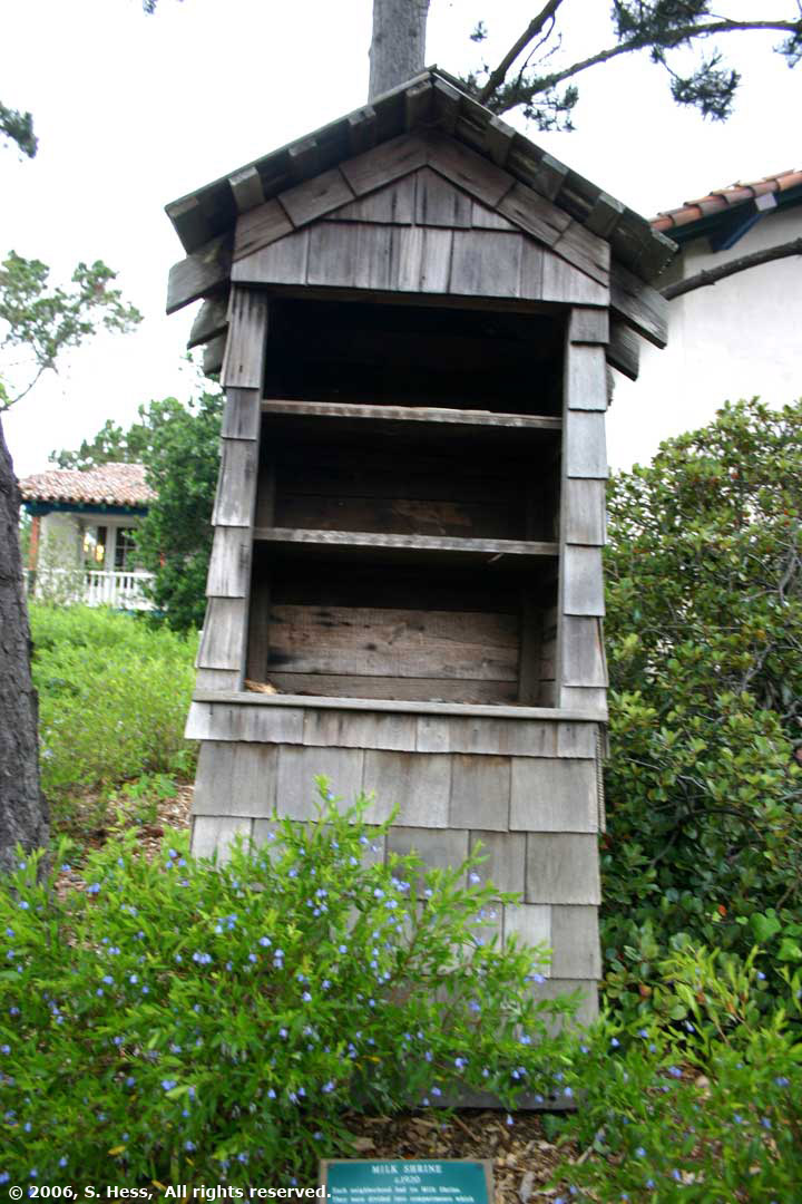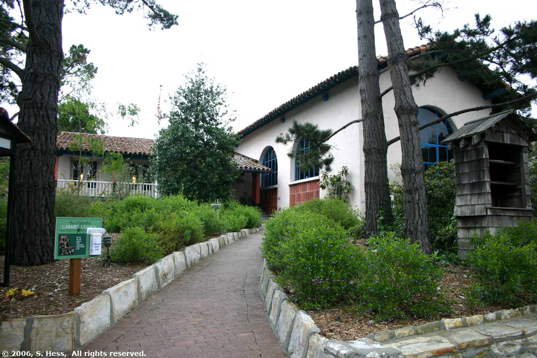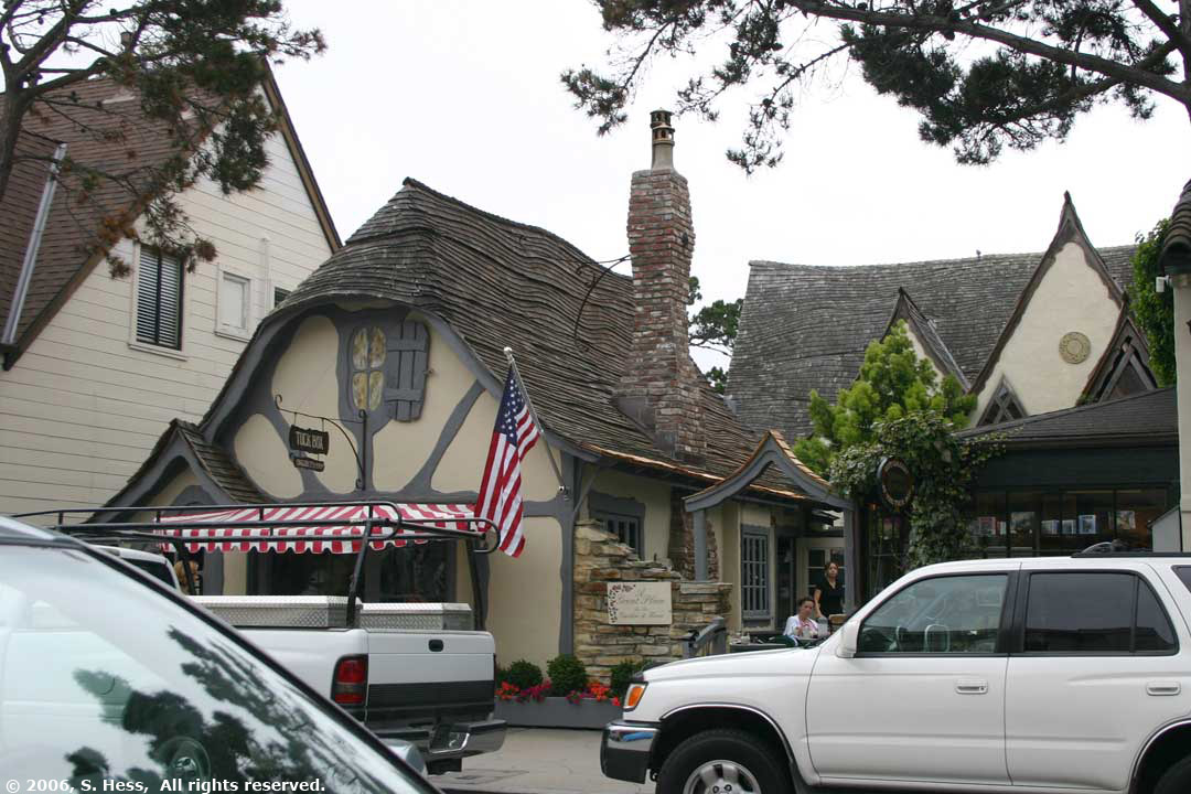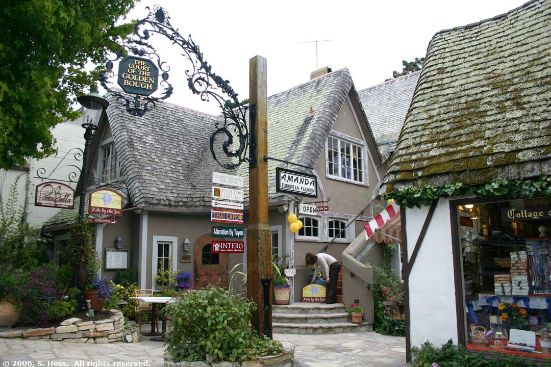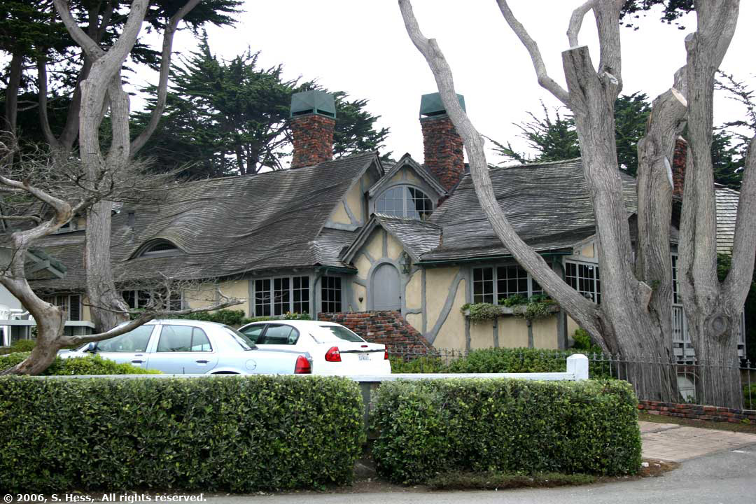 In the morning we drove south to Carmel by the Sea, about 15 miles south of the campground. Carmel is not an ordinary beach town. It is, to say the least, an upscale town. Walking through the streets of the town one encounters boutique shops, a variety of restaurants, many art galleries and lots of flowers everywhere. There are no high rise buildings in the town center. I don't think I saw any buildings higher than two stories. We drove along Scenic Drive and stopped to walk on the beach. Scenic drive is a residential neighborhood with multi-million dollar homes overlooking the bay. The low clouds, haze and temperature in the low 60s didn't keep people out of the water. I would have taken more pictures of the town, but, because of the overcast, the light was very flat and the colors were not as vivid as they should have been.