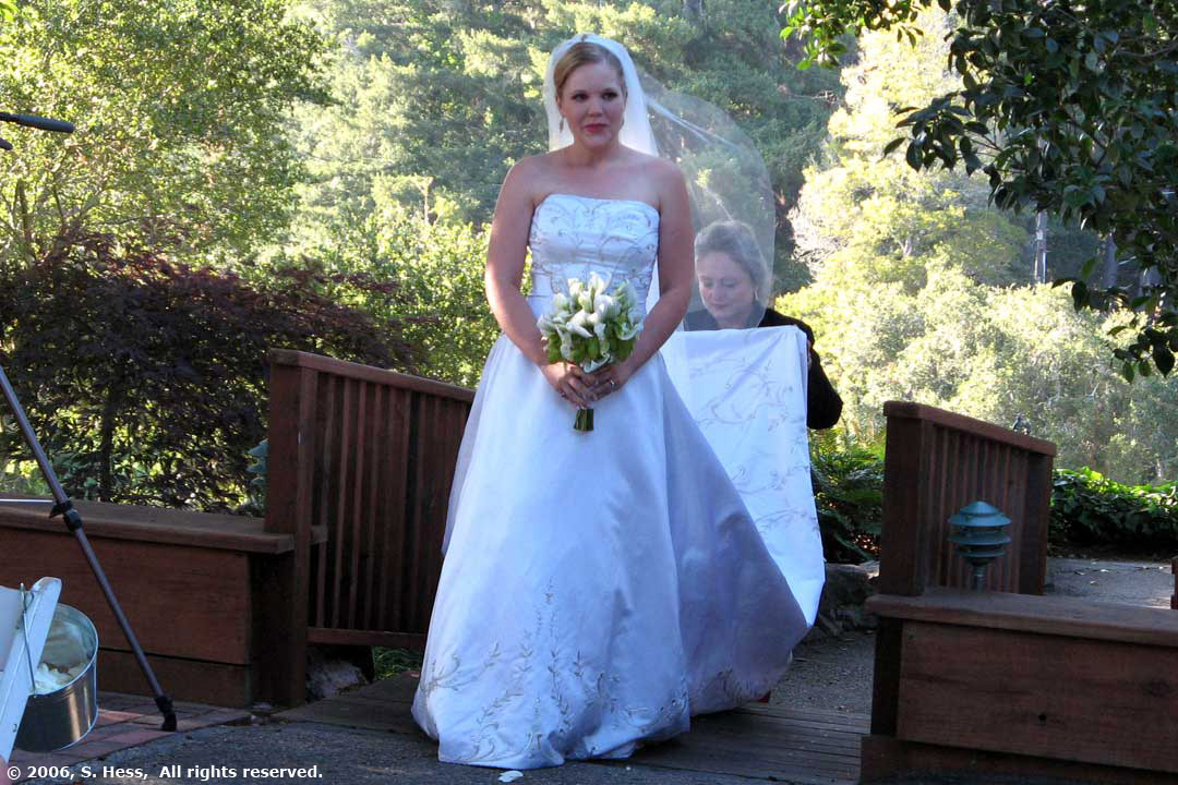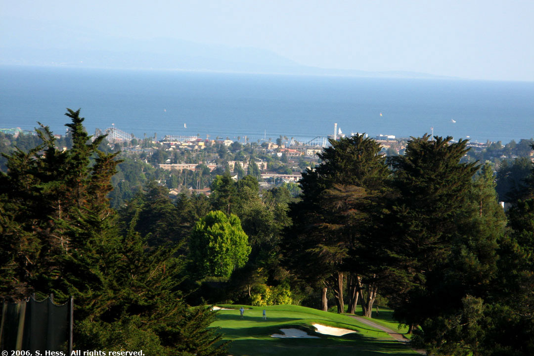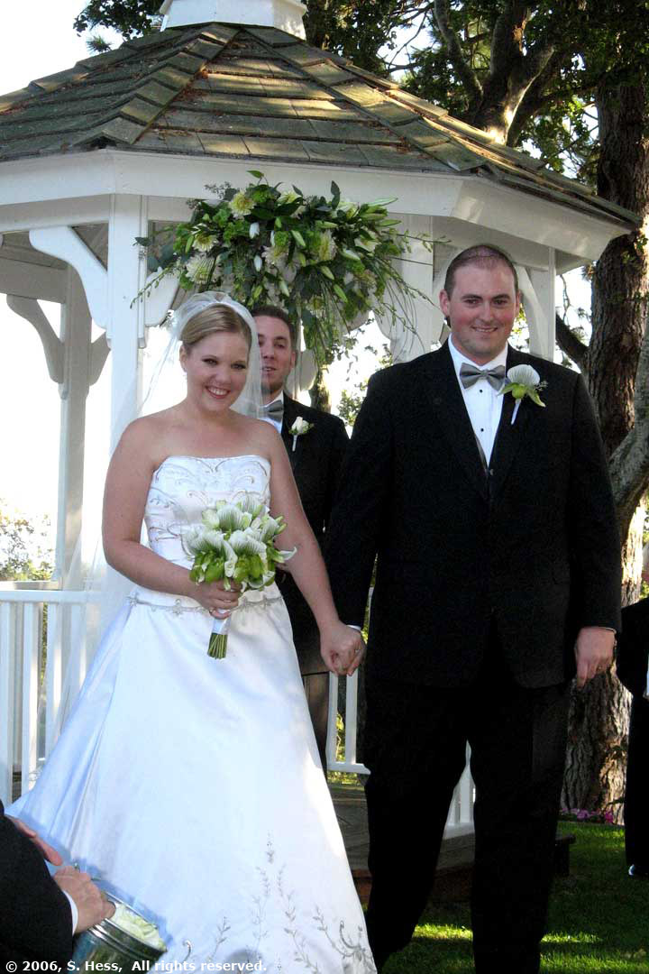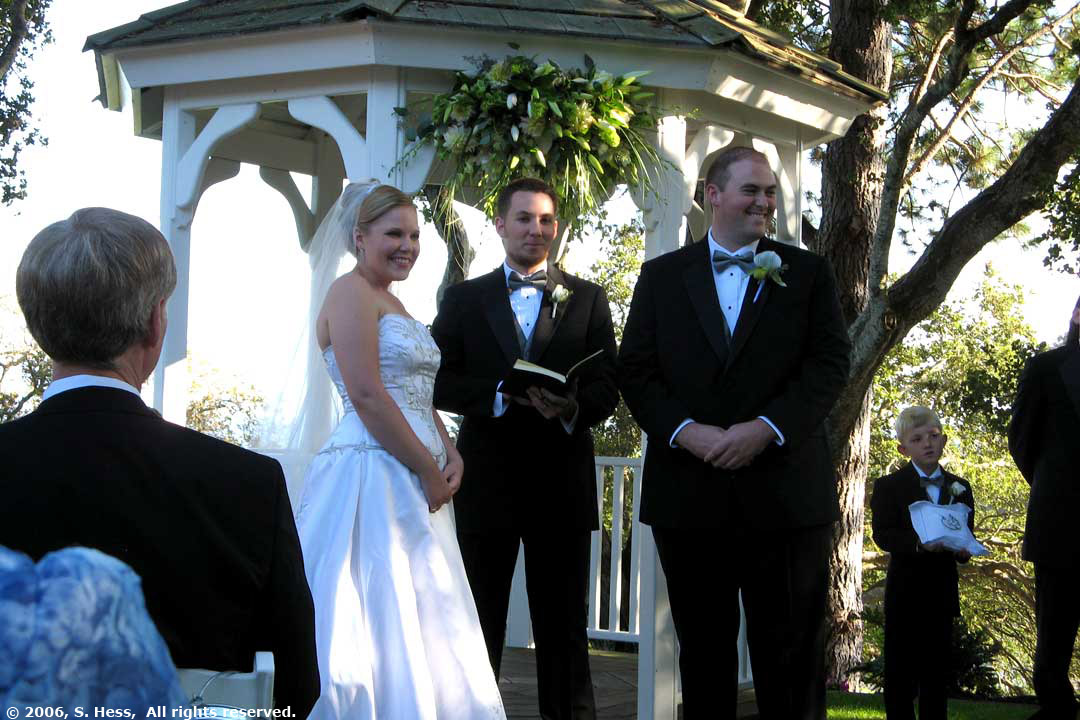 The wedding took place this evening at the Pasatiempo Golf Club overlooking Santa Cruz and Monterey Bay. This was a beautiful setting for a wedding and the weather couldn't have cooperated more. This morning dawned gray and stayed that way until noon. At the time of the wedding ceremony, officiated by the bride's brother, Jeremy, the haze had mostly cleared and the view of Monterey Bay and Santa Cruz was spectacular. Later in the evening, a three quarter moon shone over the bay and its light was reflected off the water. It had cleared enough so that we could see the lights of Monterey, 25 miles away.