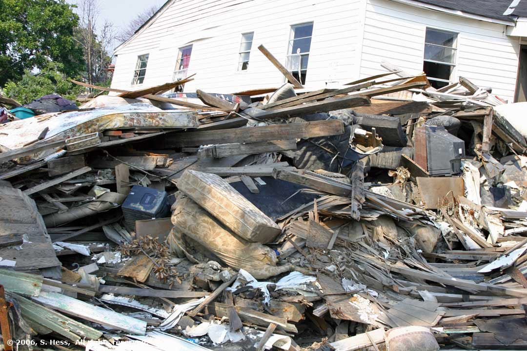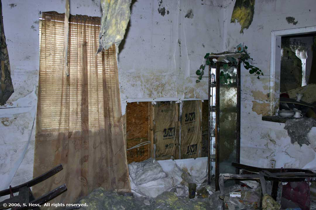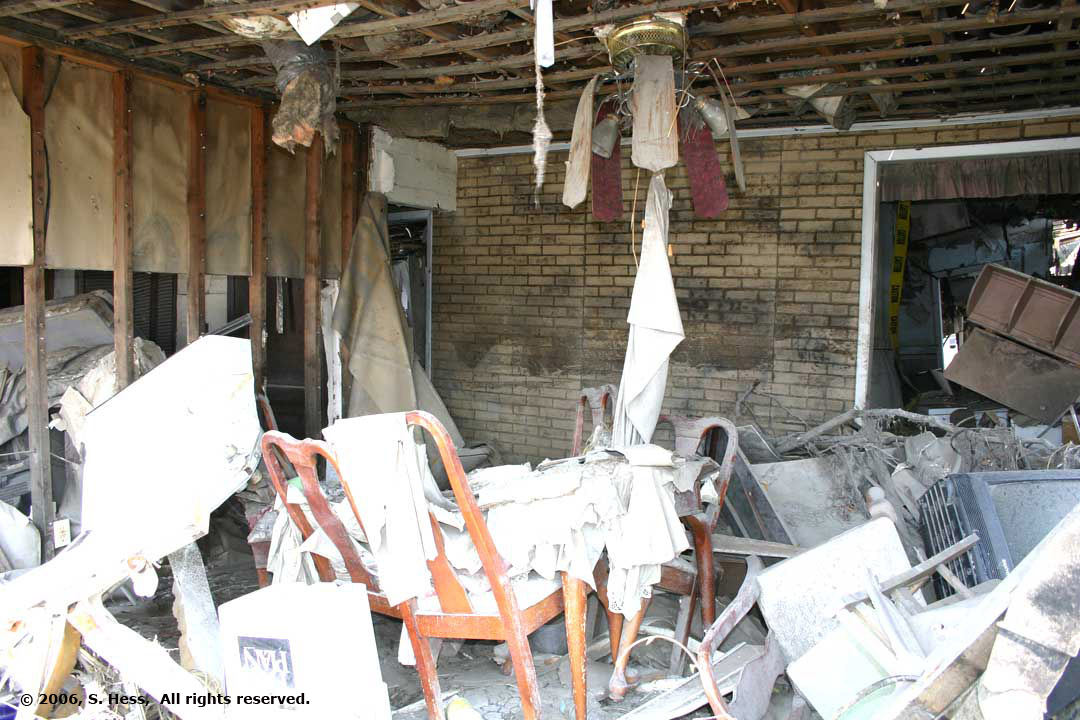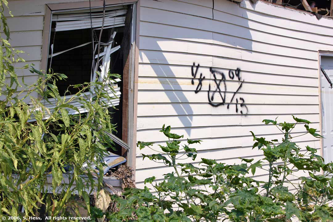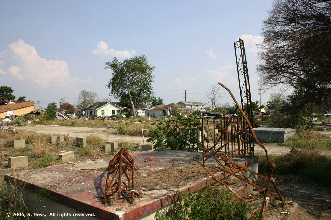 Today we met our nephew, Adam Hess, who is working on his Masters at Louisiana State University in Baton Rouge. Adam took us to the Lower 9th Ward, scene of some of the worst destruction from Hurricane Katrina. He told us that the area was cleaned up a bit since his last visit to the area. Much of the debris that was in the streets has been moved off so that traffic could flow. A number of the houses have been demolished and all that is left are concrete supports and the occasional front stoop. The area we visited was only a few blocks from one of the levee breaks and the impact of the rushing water is amazing. Houses were moved off their foundations or ripped apart. The few that survived somewhat intact had almost everything inside them destroyed. The water marks on the sides of the buildings or inside them indicates that the standing water was at least five feet deep.