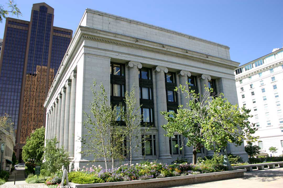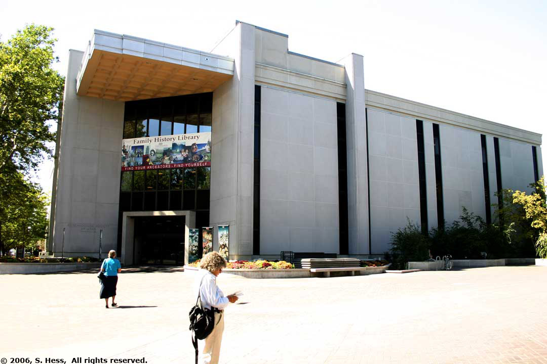 We walked through the square and entered several of the buildings. The Temple itself seemed to be busy with a number of weddings. As we walked by we could see a bride and groom entering the Temple while another was having their pictures taken at the fountain in front of it. The Mormons like to keep track of their ancestry and in the process have created one of the major genealogical databases and libraries in the world. We went to the Family Research Center in the Joseph Smith Memorial Building to look up members of our family in the computer database (available online). Because of privacy issues, only deceased members of a family will be on the database and then only if submitted. They also have census data, but the most current is for the 1930 census (again for privacy reasons). We also went to the Family History Library which has an extensive collection of family histories. We wanted to see the museum but got into a conversation with one of the docents, who also happened to be a missionary, and never saw the museum because we had to leave to hear an organ recital at the Conference Center. |