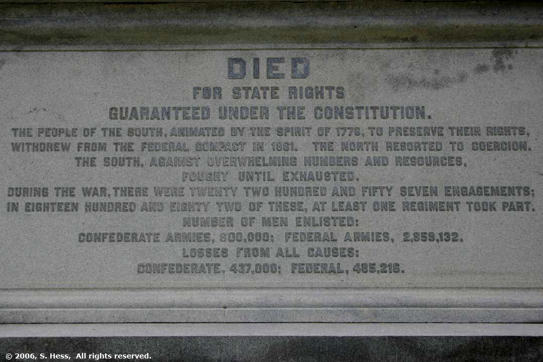 | The inscription on the Confederate Memorial on the Capitol grounds is interesting when viewed from a Northerner's perspective | |||||||||||||||