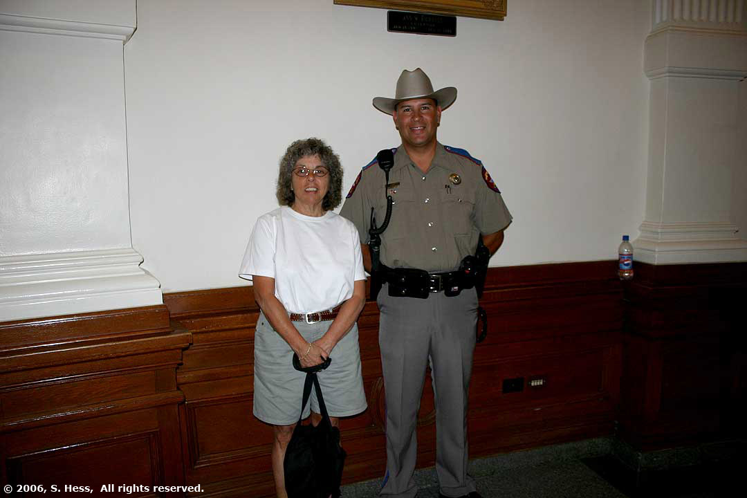 While standing in the Capitol rotunda, we got into a wide ranging conversation with a Texas Highway Patrol officer. He was quite an interesting individual and had previously served as part of the governor's protective detail when George W. Bush was in office. Talking to him made me wonder whether the State Highway Patrol and the Texas Rangers were the same organization. I somehow thought they were not, but really didn't know the relationship so I went on the Internet for the information. The State Highway Patrol and Texas Rangers are both part of the Texas Department of Public Safety and together act as the state police force. The Rangers are an a small group that is an investigative arm of the Department of Public Safety. For more information follow this link. The area south of the Capitol has a lot of historic buildings, at least judging by the number of buildings with plaques on them. For all we know they may be the same plaque we bought for my brother a number of years ago, which read, " On (date) at this place, nothing happened." I took pictures of some of the more interesting buildings, particularly along 6th Street. The most impressive building along the stretch of 6th Street that we walked was the Driskill Hotel (before someone sends us a note on the spelling... it is correct). We understand that 6th street is one of the centers of night life in Austin. We thought about going to the campus of the University of Texas at Austin, but parking in the area was difficult so we had to skip it. The other disappointment was that we didn't get to see the bats of the Congress Street Bridge. Susie had been at a conference and stayed at a hotel overlooking the bridge. Unfortunately, the bats were out of town for the winter. They are here now, but were sleeping when we visited. Bats are nocturnal and we decided we would not stay until sunset. Read more about the bats. |