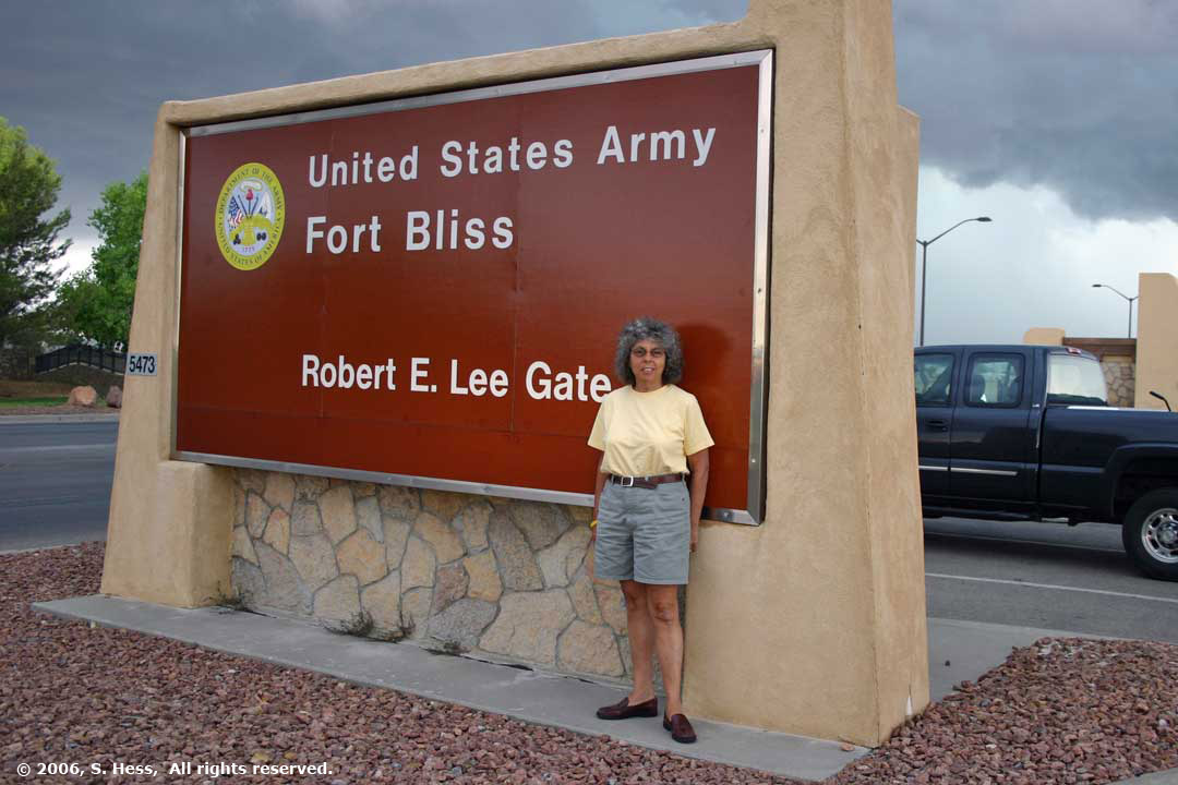Susie wanted me to take a picture of her at the gate of Fort Bliss, about 5 miles from the campground. She lived here for a few months while when her father was in training for deployment to Europe during World War II.