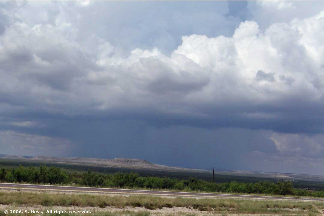 The weather was good until we got to the Fort Stockton area. We had a tail wind which helps improve our fuel consumption. Once past Fort Stockton the weather changed. We ran into a number of heavy showers and thunderstorms. You could see the storms traveling across the country and could smell the rain before we saw it. When the rain came, the temperature dropped as much 20 degrees. Within 10 minutes after the storm, the temperature started back up to where it was. We got to El Paso shortly after they had experienced a very heavy thunderstorm, There was a lot of standing water everywhere. Fortunately it stopped and we were able to set up without getting soaked.