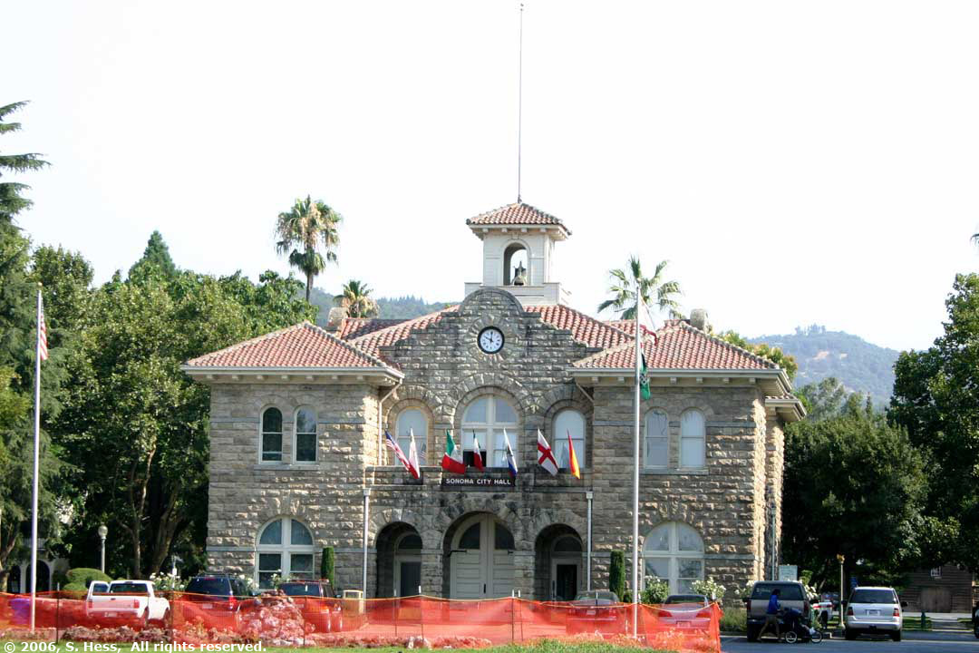 Our first stop was the town of Sonoma. The Mission of San Francisco Solano was founded in 1823 as the northern end of a chain of missions founded by the Spanish and Mexico starting in 1523. The Mission is opposite the northeast corner of the Plaza that is the center of the town. The streets on all sides of the Plaza have many buildings that date back to mid 1800s.
