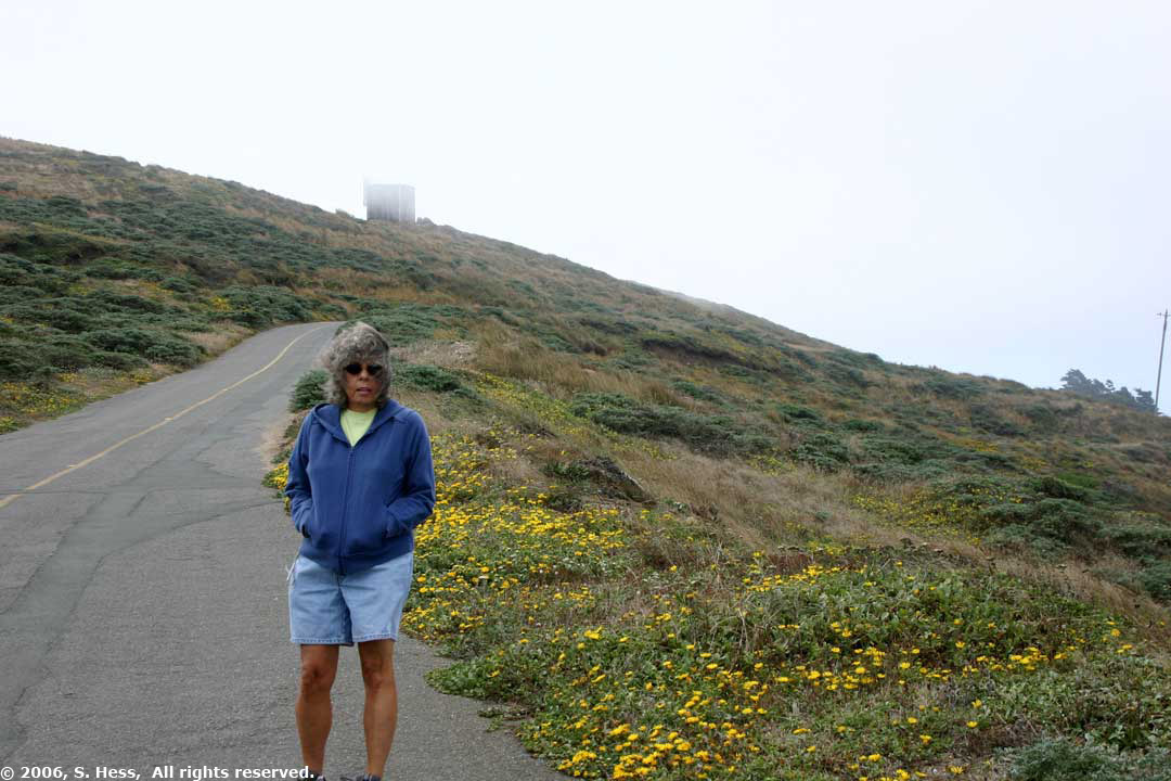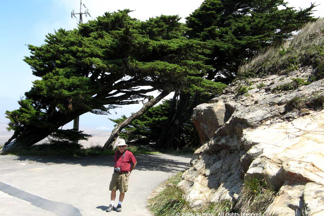 The effect of Point Reyes winds is seen in Susie's hair and in the windswept trees
