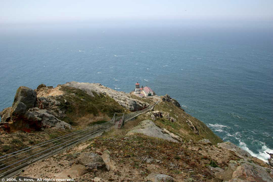 | Point Reyes Light sits on a cliff overlooking the Pacific. To access the lighthouse, one has to walk up and down 300 steps, equivalent to a 30 story building. Unfortunately, the lighthouse is closed on Tuesdays so we couldn't walk down... yeah right! | |||||||||||