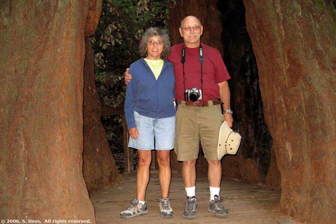 I had driven through Petaluma about 15 years ago and liked what I saw on the main street. The town has a lot of Victorian buildings in the downtown area as well as in some of the residential areas. Many of these buildings have been maintained and contain a variety of businesses. I did make one observation to Susie that the major business in this town were bars/clubs or antique dealers. We walked around the town, which was quiet when we got there as many of the stores were still closed. I don't know what prompted me to suggest going to Bodega Bay. I heard the name and thought that it might be an interesting place to visit. It really wasn't much. The town had some hotels, bed and breakfasts and marinas. It was a nice setting with rolling hills behind the town, but nothing that impressed us. The route to Point Reyes National Seashore took us on California Highway 1 along Tomales Bay. Tomales Bay is the extension of the San Andreas fault. The land to the west of the bay is moving north past the mainland. There are a number of beaches on the seashore, but they were not our objective. We wanted to see the Point Reyes Lighthouse. This area has the strongest winds on the Pacific Coast and we felt them. I estimate the wind was blowing from the west at about 30-40 miles an hour. Coupled with a temperature in the upper 50s. It was quite cool (Susie says Cold). Muir Woods has one of the few remaining stands of old growth Coastal Redwoods. The Coastal California Redwoods are the tallest living things in the world. These Redwoods can grow to 370 feet with a diameter up to 22 feet and live up to 2,000 years. The Giant Sequoias we saw at Yosemite can grown to about 311 feet but can be twice as wide as their coastal cousins and can live to 3,200 years. The tallest trees in Muir Woods are about 250 feet tall. The other difference between Redwoods here when compared to Yosemite is the density of the trees. In Yosemite they are found in small groups, but at Muir Woods they dominate the forest. It is hard to describe what it feels like to walk among these giants and it is equally hard to capture them in pictures, My camera lense has difficulty capturing their majesty. |