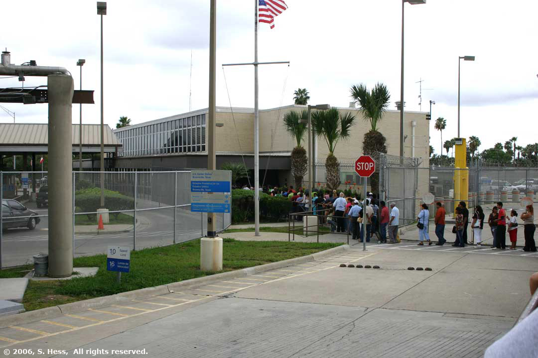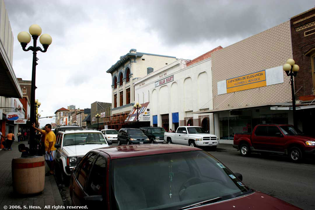 Our return to the US was a little more difficult then going the other way. Hundreds of Mexicans were crossing over the border to go shopping in Brownsville. US Immigration procedures are more strenuous and it took us longer waiting on line to be processed than we actually spent in Mexico. The first street you hit when crossing into Brownsville at the Gateway Bridge is Elizabeth Street. The street is lined with shops catering to the Mexican shoppers. It seemed to us that most of the stores sold clothing and household goods. Shoe stores seemed to be the most popular with more than one on every block.
