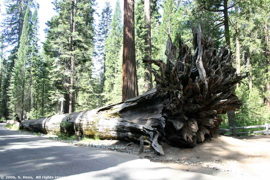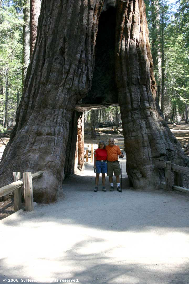 When you enter Yosemite from the south entrance, the closest area is the Mariposa Grove. We tried to visit it yesterday, but were told that they limit the number of visitors allowed to drive into the grove area. We could have taken a shuttle to the grove but chose to come back today, a bit earlier than yesterday. The Mariposa Grove is actually the beginning of Yosemite National Park. Abraham Lincoln signed an order that protected the grove from commercial uses in 1864. The rest of the Yosemite was not made into a National Park until 26 years later. Giant Sequoias are among the oldest living things on earth. Some of these trees can be over 3,000 years old. We only walked about half of the trail through the grove but still had the opportunity to see the some of these impressive giants. The tallest tree in the grove is about 290 feet (equal to a 29 story building). They are not the tallest Redwoods. A related species growing along the California Coast grow up to 368 feet. Because of their size, it was difficult to capture many of them in pictures.