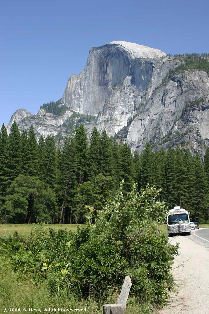 Well inside the Yosemite Valley is Yosemite Village, in which we spent a bit of time. There is a beautifully done 30 minute movie about the park that shows it through the seasons. The Ansel Adams Gallery had prints of his pictures for sale (we didn't buy). There is also a recreation of an a Ahwahnee Indian Village and a number of other exhibits.